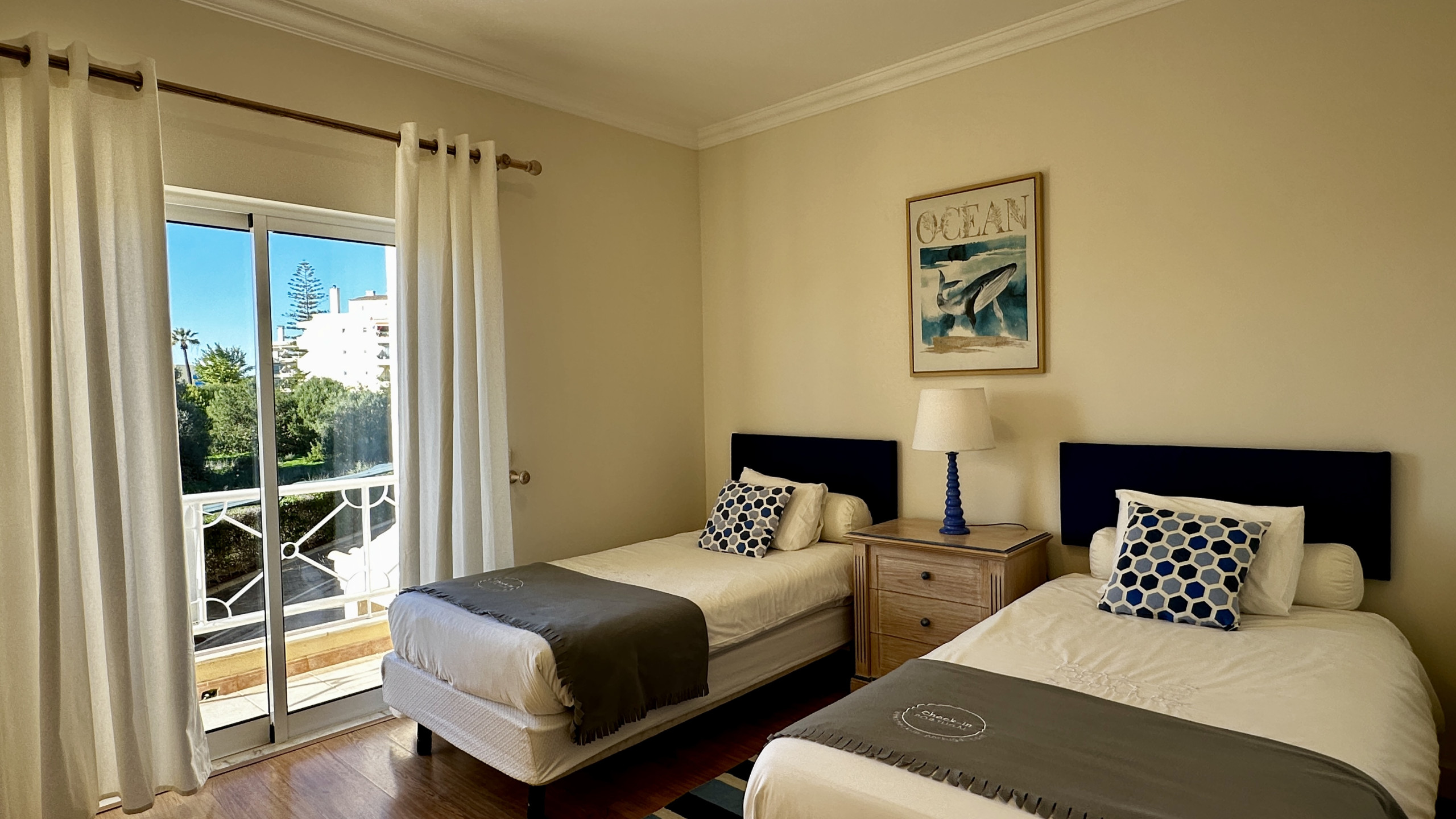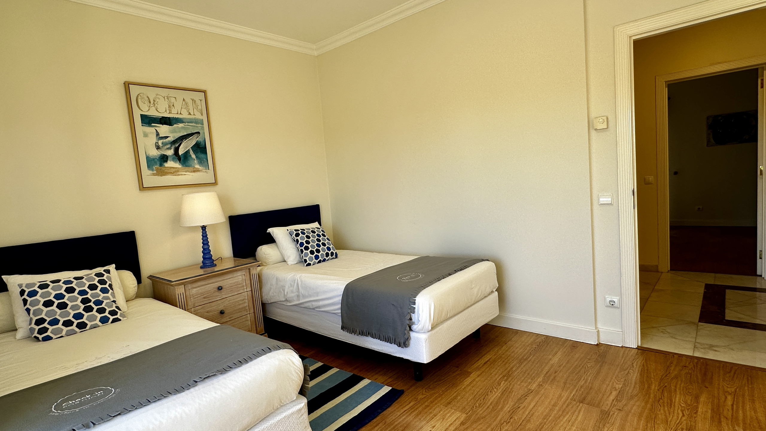 Komfortable Unterkünfte: Mit 2 Zimmern en suite, eines mit Doppelbett und direktem Zugang zu einem Balkon, und einem anderen mit zwei Einzelbetten sowie zwei kleinen Zimmern im Dachgeschoss bietet diese Ferienwohnung komfortable Unterkünfte für alle Gäste.