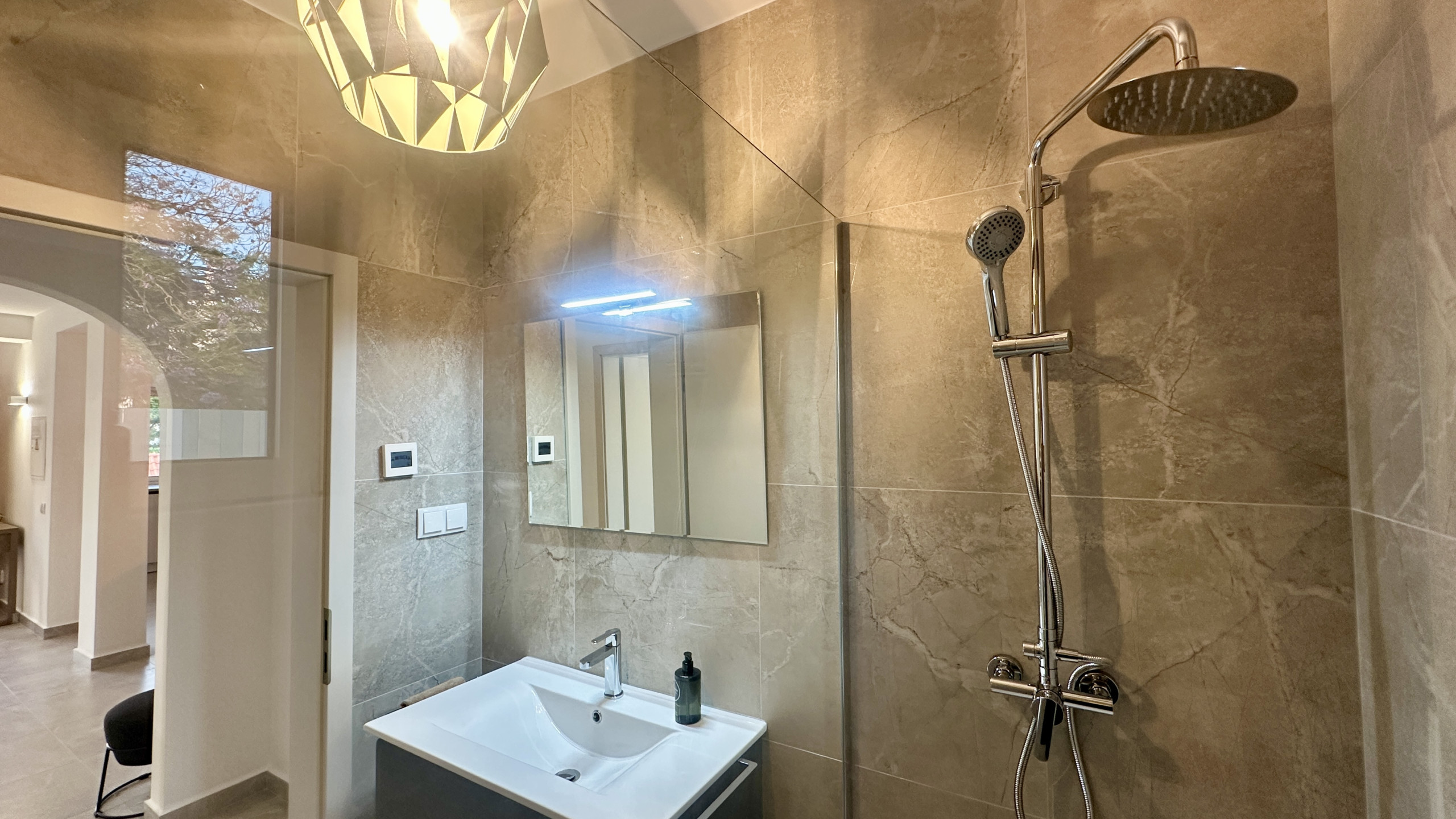 2 Zimmer im Erdgeschoss, die sich ein Badezimmer mit Dusche teilen