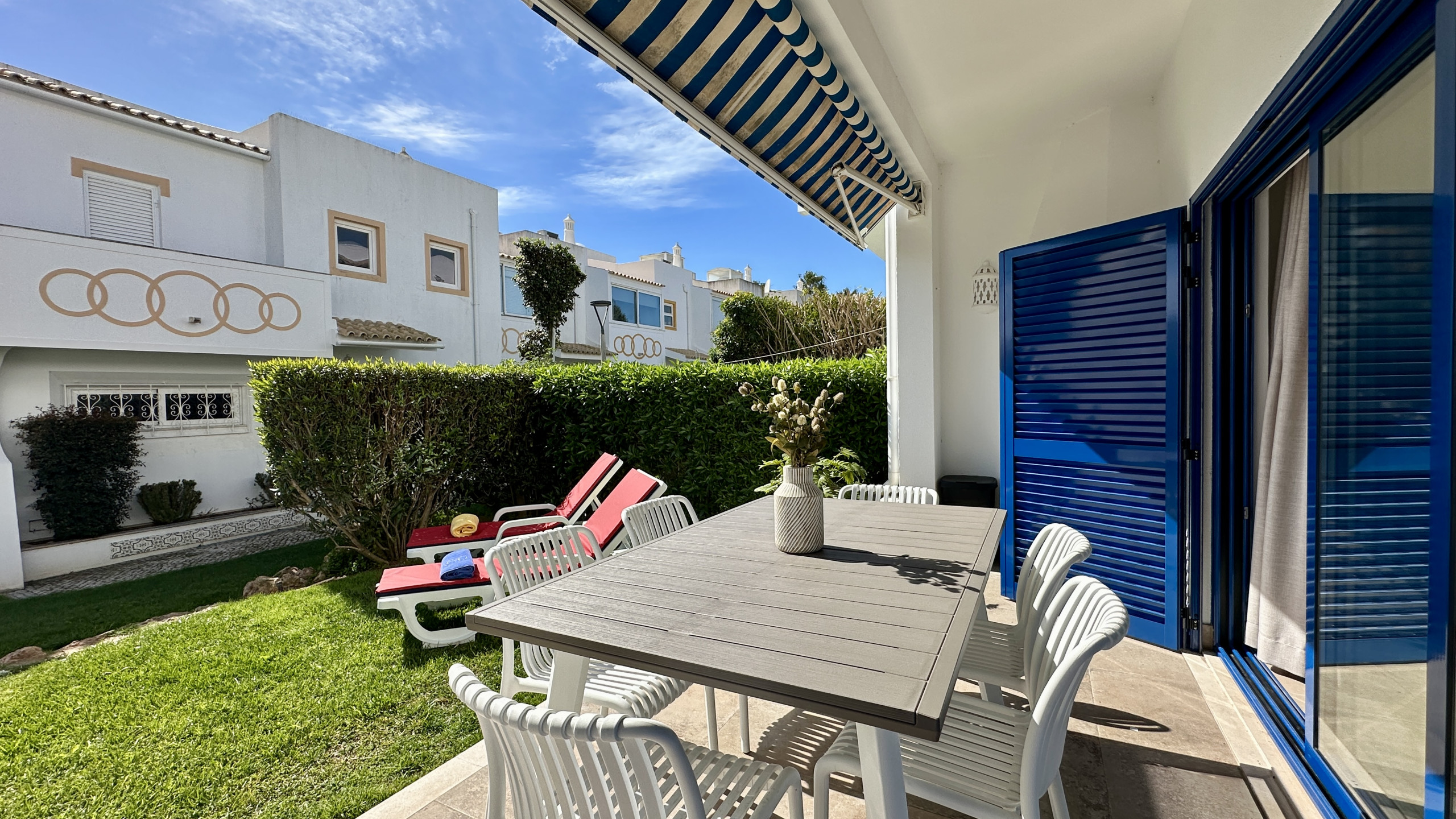 Esta casa geminada em Albufeira possui 2+1 quartos e pode acomodar até 6 pessoas.