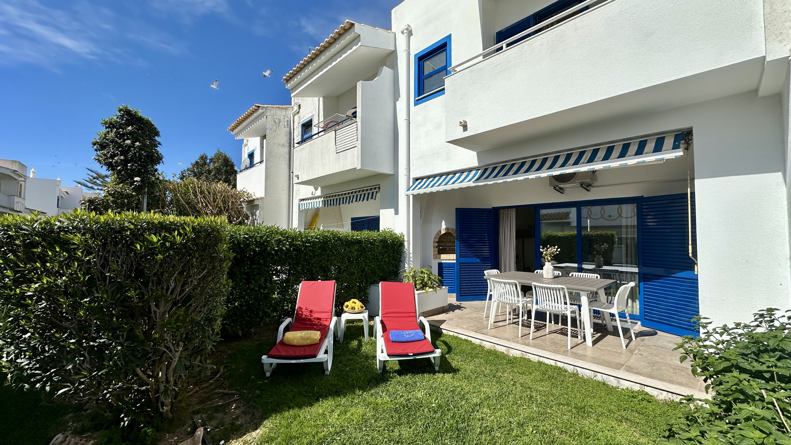 EXTERIOR: mobiliário de jardim, terraço e churrasqueira e uma piscina comunitária, garantindo o máximo de conforto durante a sua estadia.